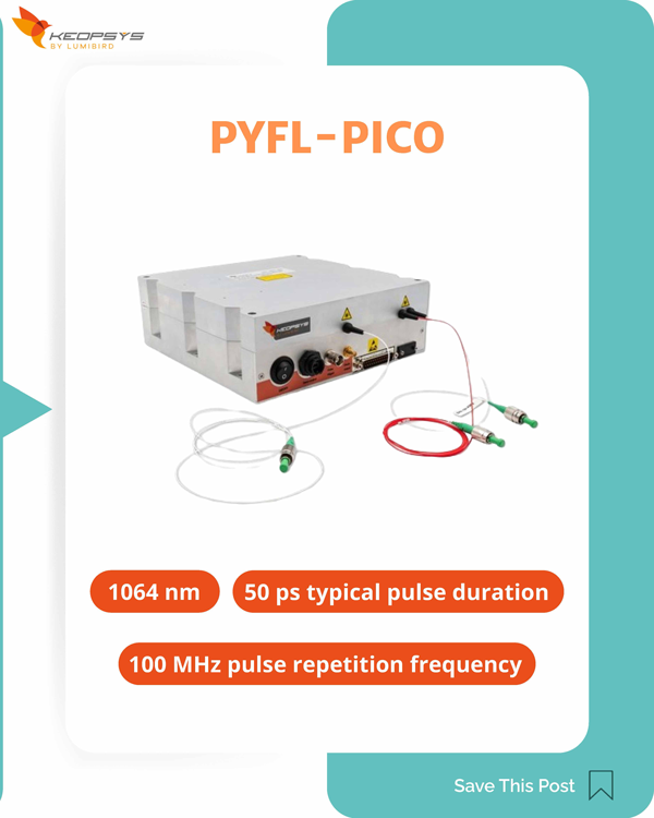 PYFL-PICO is a picosecond pulsed Ytterbium Fiber Laser operating at 1064 nm, with a 100 MHz pulse repetition frequency and ~ 50 ps pulse length.