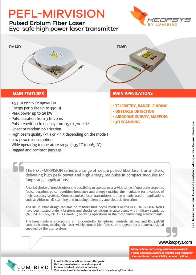 Lumibird provides numerous of PEFL-MIRVISION which are working days and nights with vibrations, shocks and wide range of temperature deltas.